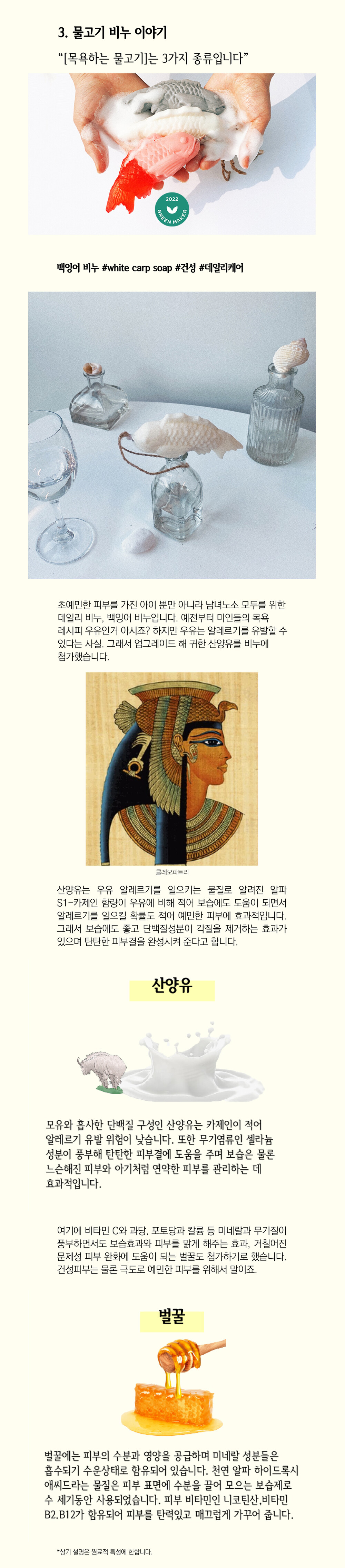 당신의 피부 맞춤 비누, [목욕하는 물고기]로 우리의 삶은 아름답게 선순환됩니다. 자연을 사랑하는 마음까지 눌러 담은 장인정신이 빛나는 수제 비누로 여러분의 일상을 재충전하세요!